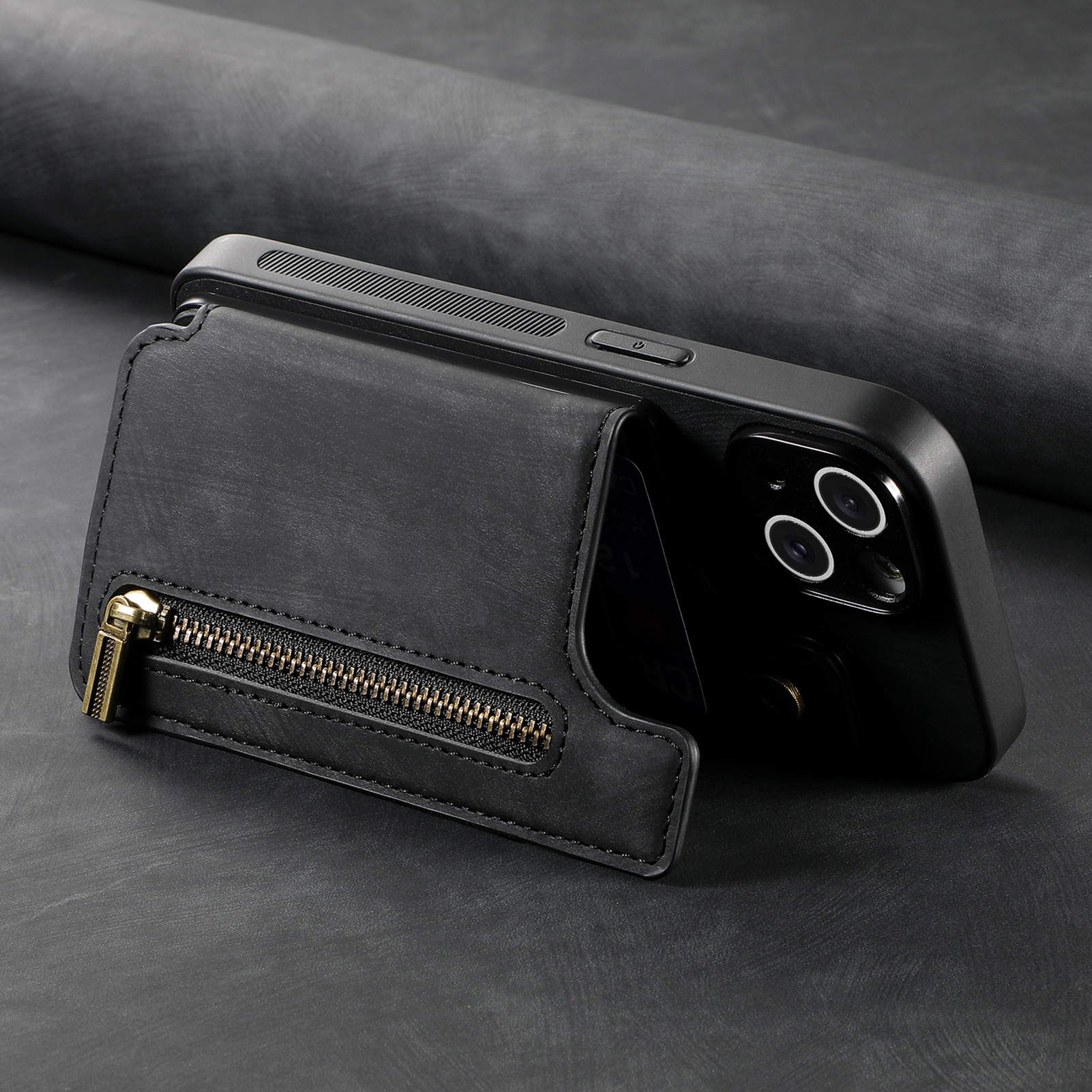 The Heritage Leather iPhone Wallet Case combines a protective phone cover with a smart wallet for your essential cards and cash, featuring brass snap closures and premium stitched leather. A zippered pocket keeps your belongings secure while maintaining a slim profile that slides easily into your pocket or bag.