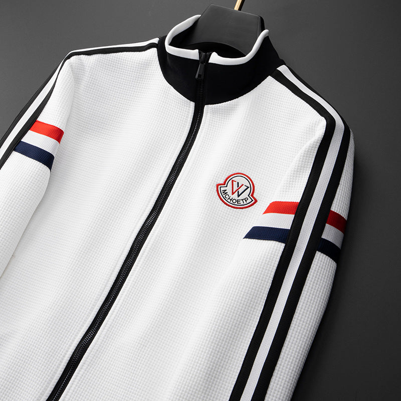 Crafted from an ultra-soft waffle-knit weave, this set brings structure and breathability with every wear. The contrast stripes and embroidered crest badge deliver a bold visual punch, designed to turn heads at every angle.