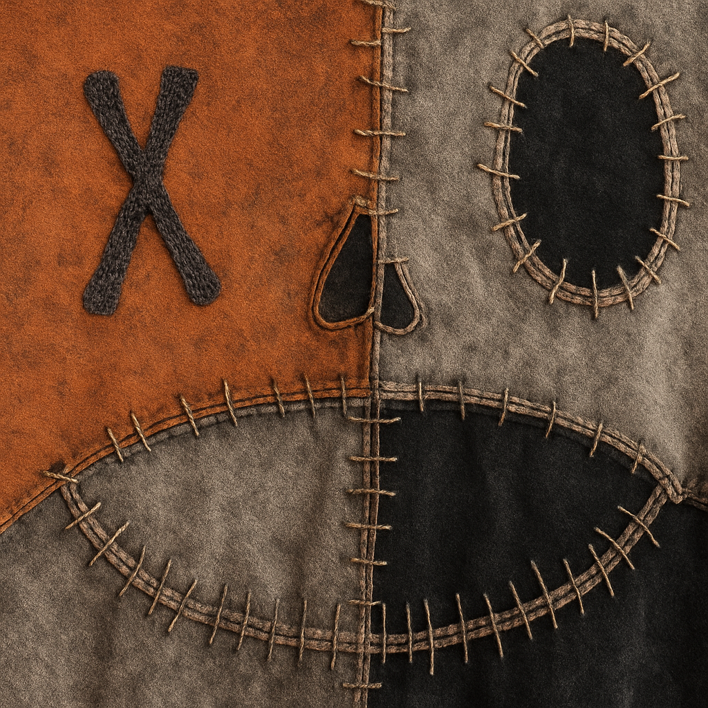 Built from heavyweight brushed cotton, this stitched hoodie fuses Halloween mischief with street-edge charm. The oversized grin and mismatched X-O panels are hand-detailed with visible threadwork, bringing spooky-season vibes that hit year-round.