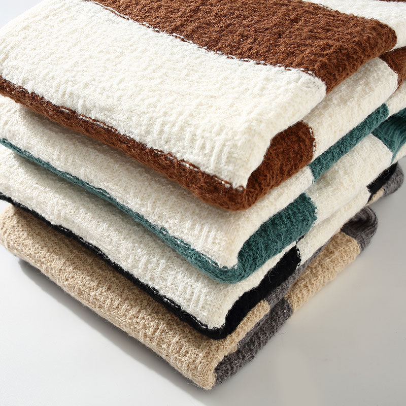 Dive into the nostalgia of retro style with this bold, horizontal-striped sweater that boasts a relaxed fit. Its chunky knit ensures a cozy, soft feel, making it your go-to for unmatched warmth and comfort.