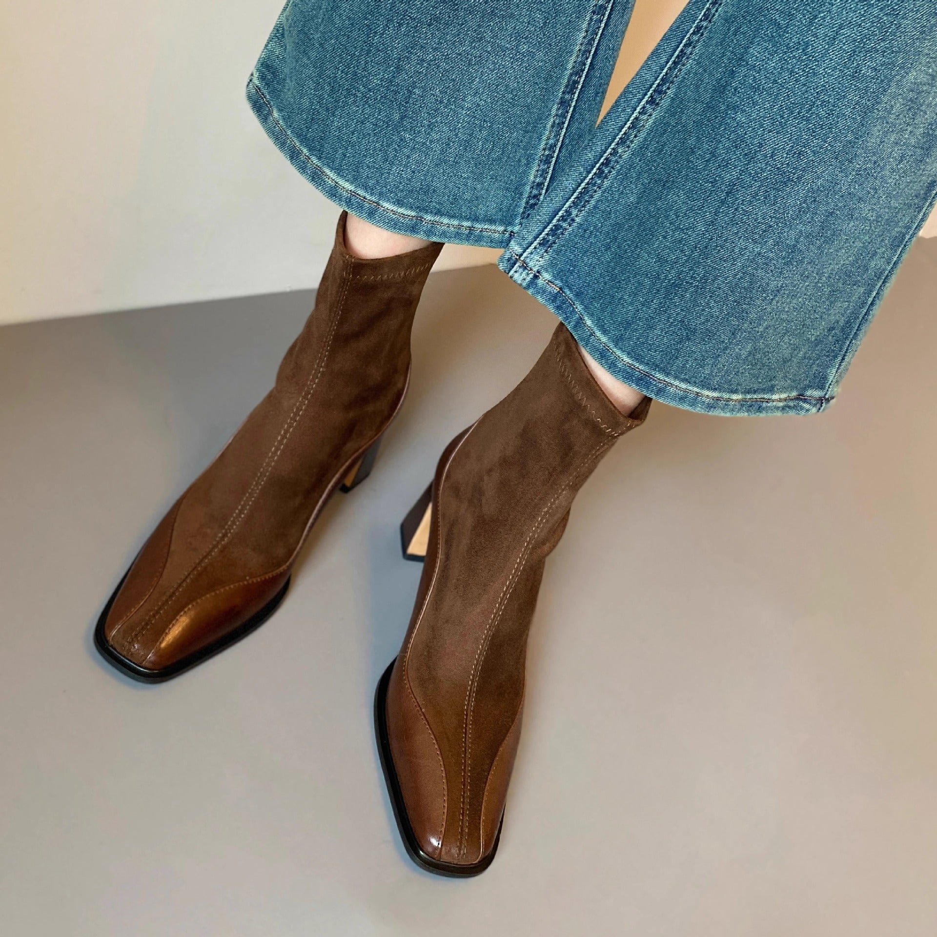 Boots with a little attitude: Featuring a sleek, seductive design, these boots are elevated by a block heel and smooth leather that beautifully contrasts with the dark, rich suede. They're so comfortable, you'll want to live in them.